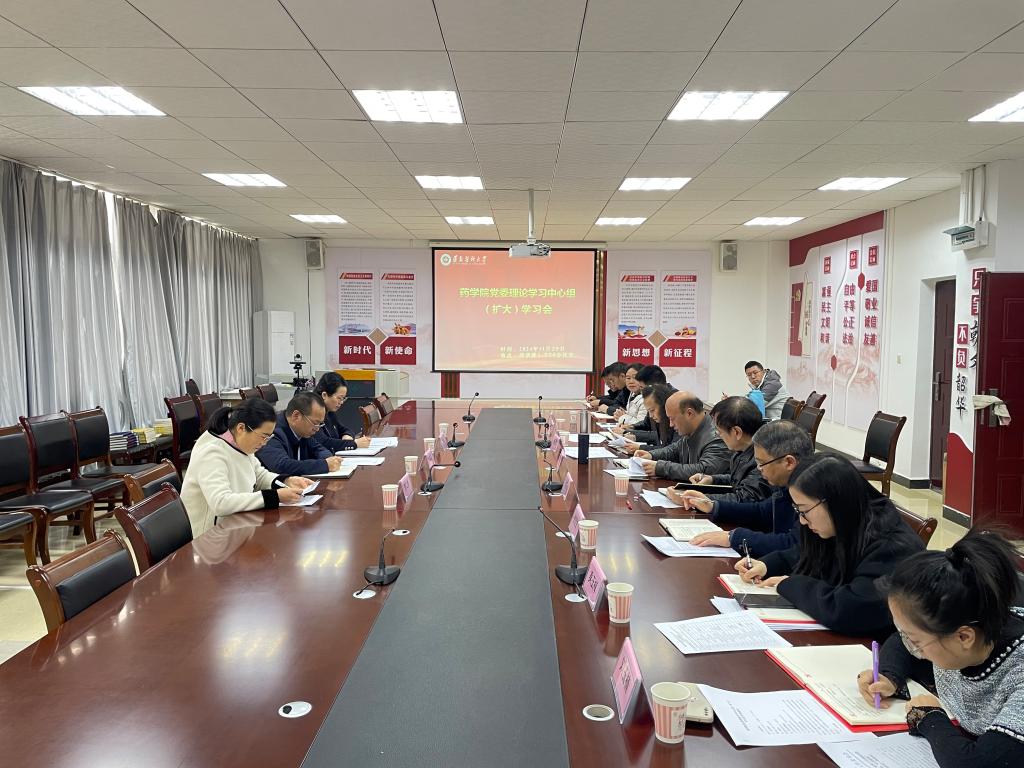 11月29日,药学院在1-506会议室召开党委理论学习中心组(扩大)学习会议,深入学习习近平总书记关于文化强国建设重要论述,并结合实际进行专题学习研讨。学校党委委员、副校长龚其海带领党委宣传部人员列席旁听。会议由药学院党委书记袁泽利主持。
