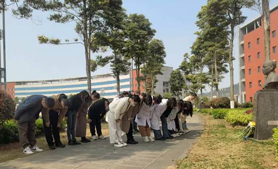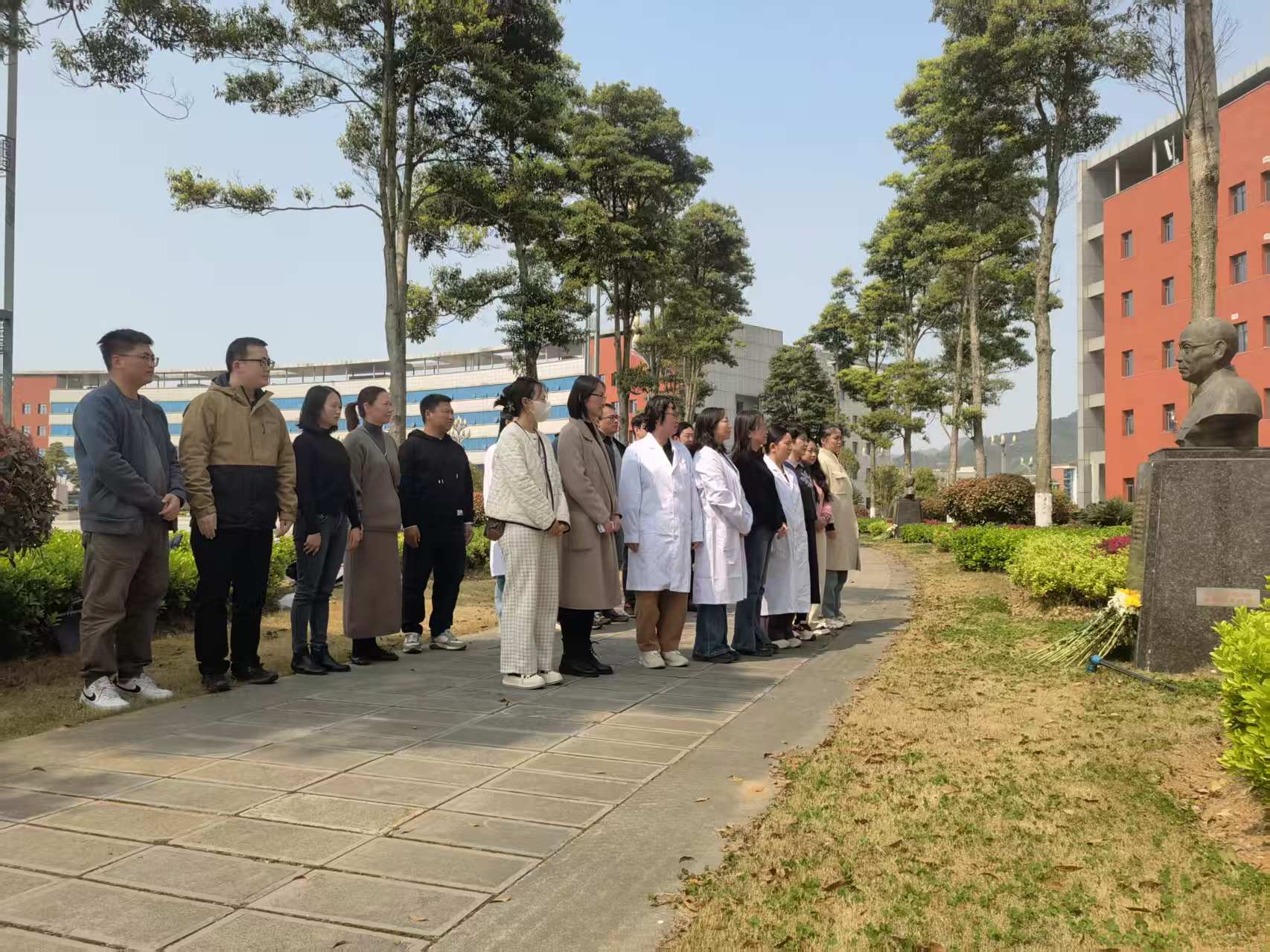 2025年4月3日下午,药学院教工第六党支部在我国著名药理学家张毅教授纪念铜像前开展了“缅怀先辈风骨传承科学精神”主题党日活动。活动由党支部书记聂晶组织,支部党员参加。
