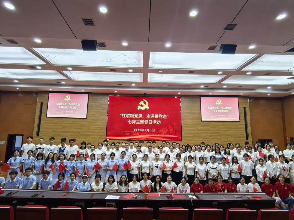 活动在齐唱中华人民共和国国歌中拉开帷幕,《打靶归来》《歌唱祖国》《映山红》《国家》《我和我的祖国》《不忘初心》等一首首耳熟能详的旋律,一句句充满力量的歌词,抒发了师生党员对党的无限忠诚和对祖国的深深热爱。