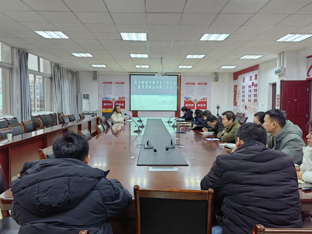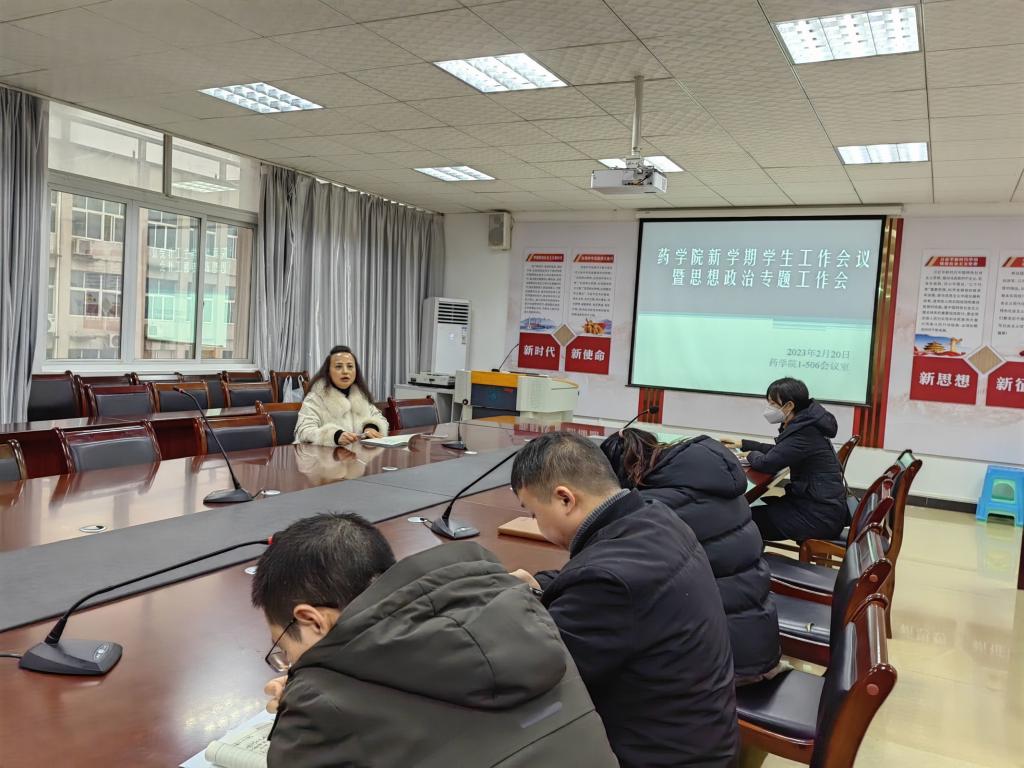 2月20日上午,药学院1-506会议室召开新学期学生工作会议暨思想政治专题工作会。药学院党委书记袁泽利、党委副书记吴庆出席会议,全体专职辅导员和兼职班主任参会,会议由药学院党委副书记吴庆主持。