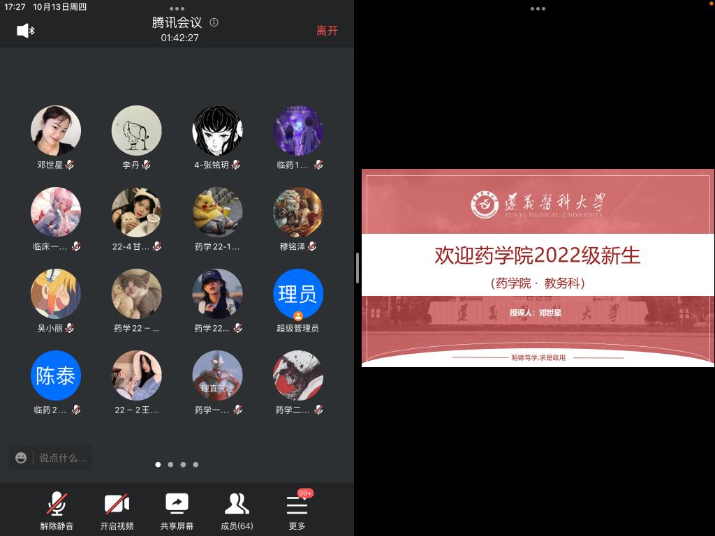 本次药学院在疫情常态化防控下,通过全员、全程、全方位的新生第一课新和“云家长会”尝试,让新生和家长在足不出户即对学校、药学院历史沿革、教研平台、师资队伍、科学研究、人才培养等有了较为全面的了解。通过新尝试,一方面增加了学生与家长对学校、药学院的认识和认同感;另一方面提高了新生和家长对于药学几个专业的认知,增强专业自信,为树立专业理想、坚定未来走药学道路的信心打下了坚实的基础。(一审:李利生;二审:吴庆;三审:袁泽利;撰稿:杜艺玫,图片收集:杜艺玫)