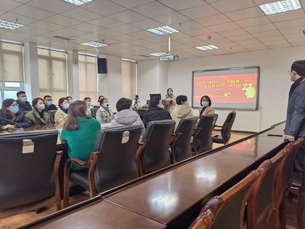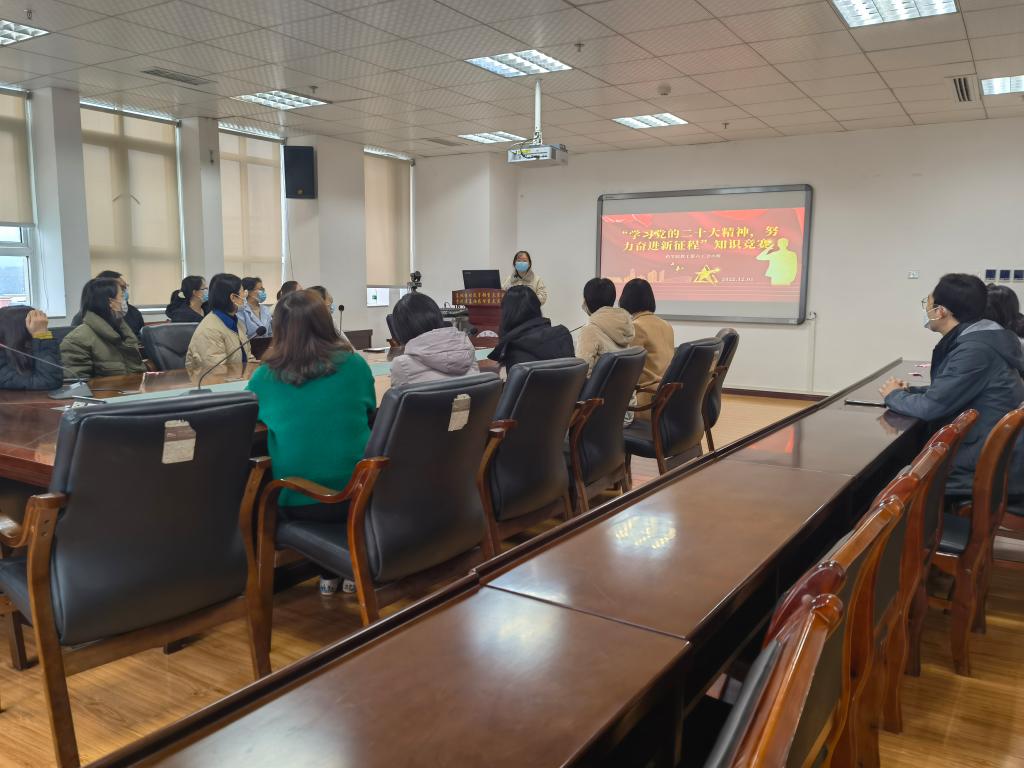 为深入学习宣传贯彻党的二十大精神,药学院教工第六工会小组于12月1日上午,在综合实验楼9楼会议室开展了“学习党的二十大精神,努力奋进新征程”知识竞赛活动。活动由教工第六党支部书记聂晶主持,第六工会无课教工参加了本次活动。