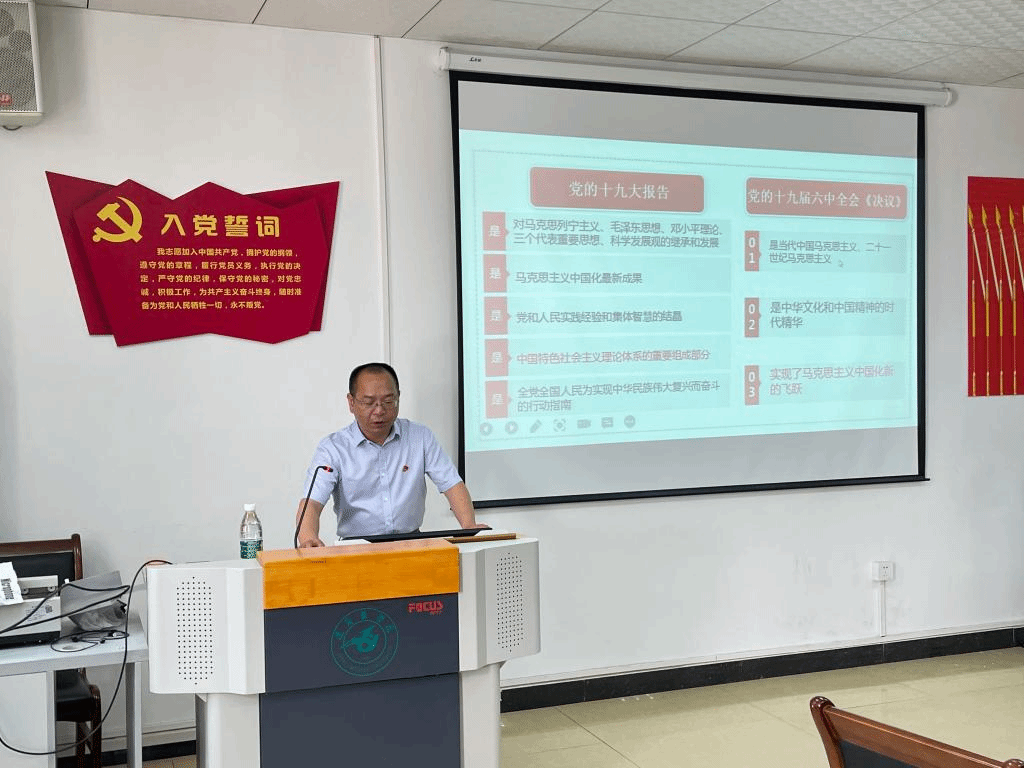 龚其海在授课中紧紧围绕“解读习近平新时代中国特色社会主义思想”这一主题,从习近平新时代中国特色社会主义思想的立论依据、主要内容、重大意义三个方面结合时政和史实,深入浅出地阐明了习近平新时代中国特色社会主义思想的科学性、重要性和前瞻性。他还指出,党的十九届六中全会确立习近平同志党中央的核心、全党的核心地位,确立习近平新时代中国特色社会主义思想的指导地位,反映了全党全军全国各族人民共同心愿,对新时代党和国家事业发展、对推进中华民族伟大复兴历史进程具有决定性意义,药学院广大党员干部要深入学习领会,用以指导药学院各项工作高质量发展。