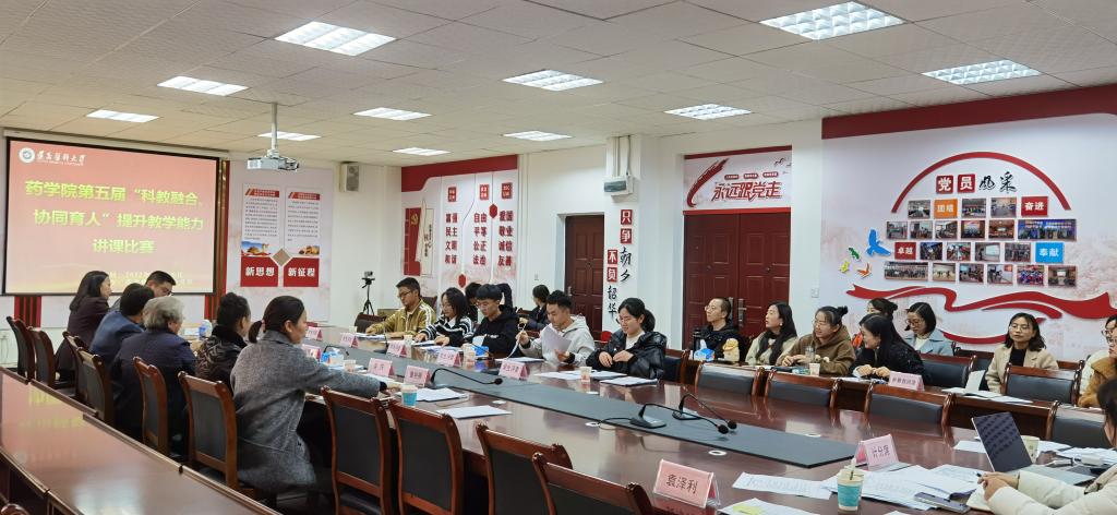 袅袅秋风起,最美校园秋。2022年11月16日,药学楼1-506会议室,药学院举办第五届“科教融合·协同育人”提升教学能力讲课比赛。学校本科教学督导团团长钱民章、药学院党委书记袁泽利、院长周旭美等专家及本科生担任比赛评委。比赛由李利生副院长主持,药学院新进教师、无课教师观摩了比赛。