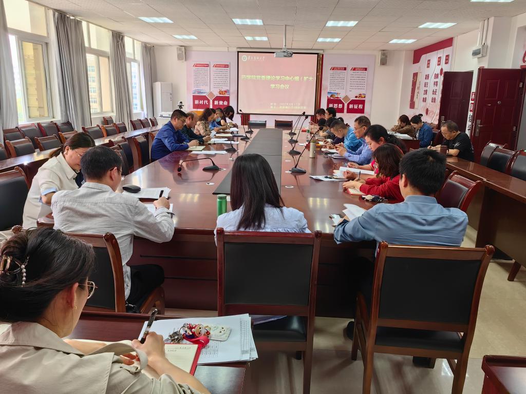 4月17日下午,药学院在1-506会议室召开党委理论学习中心组(扩大)学习会议,专题学习研讨2023年全国两会精神,传达近期重要会议、重要文件精神。药学院党政领导班子成员、副科级以上干部、党支部书记参加学习,会议由药学院党委书记袁泽利主持。