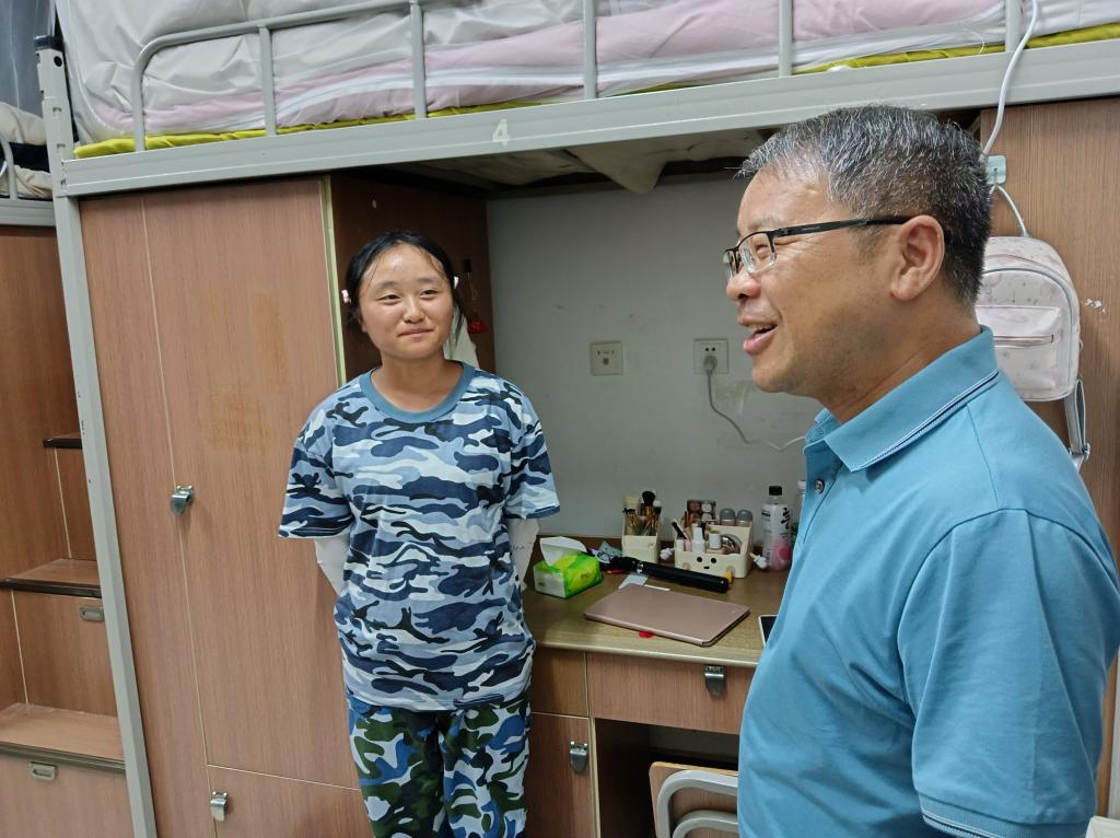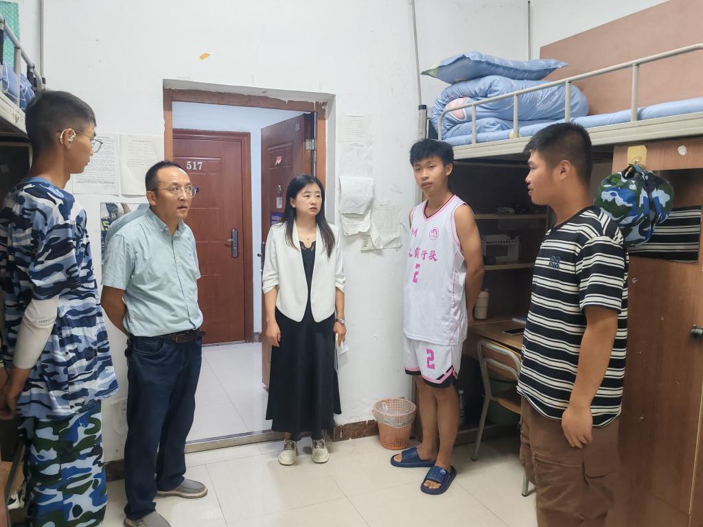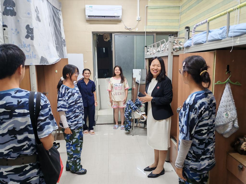 走访中,袁泽利及老师们通过与学生拉家常、说军训、谈专业、话未来等途径,不停拉近与学生的距离,还为同学们发放防暑降温小礼品,使学生切身感受到学院的关心关怀和家的温馨。