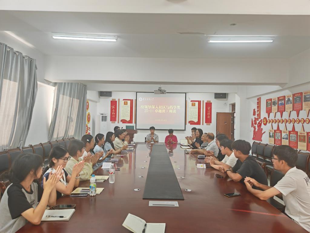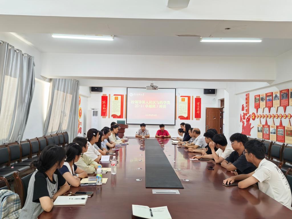 9月18日晚,遵义医科大学副校长、药学院党委书记袁泽利到心远社区会议室与2025级卓越班学生开展座谈。药学院党委副书记吴庆,药学院副院长、基础药理教育部重点实验室高健美及药学院学生第二党支部书记刘玉楠、药学院团委副书记杜艺玫参加了座谈。座谈会由吴庆主持。