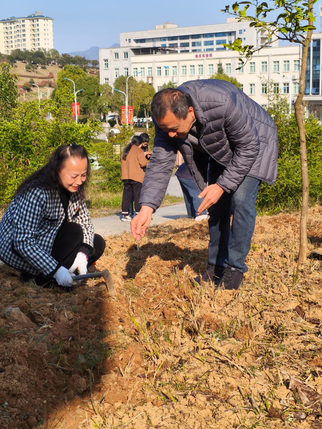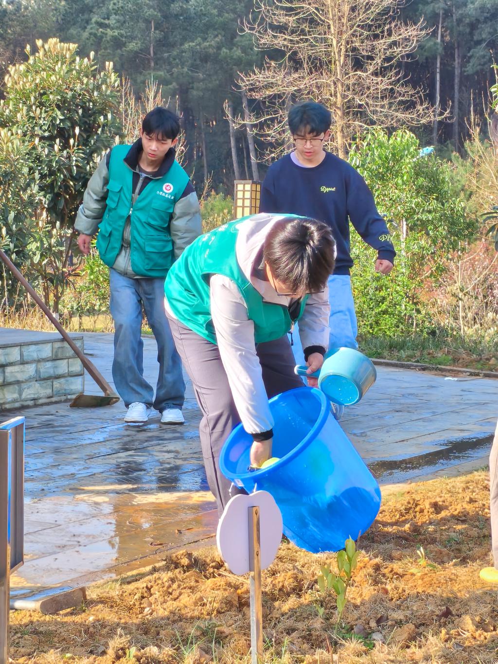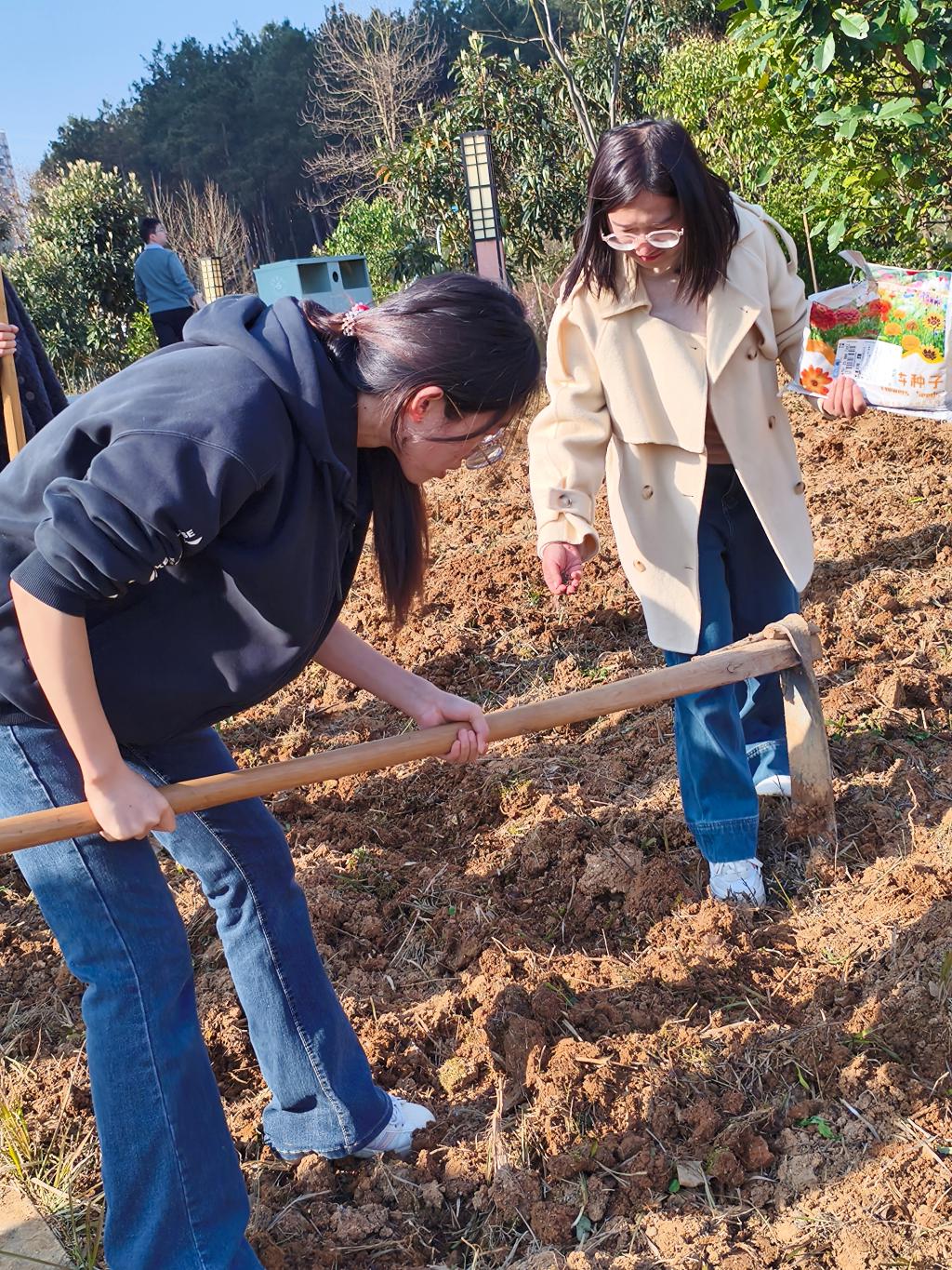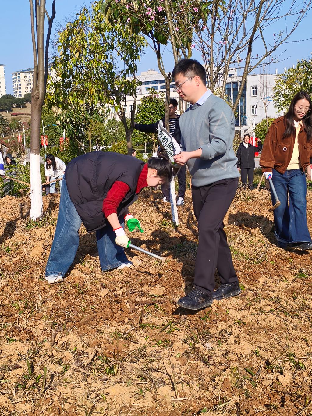 植物园内暖阳铺洒,泥土飘香。师生除草翻土、播种施肥、掩土浇水,在忙碌与默契中播下春日的期许,收获劳动的成长。