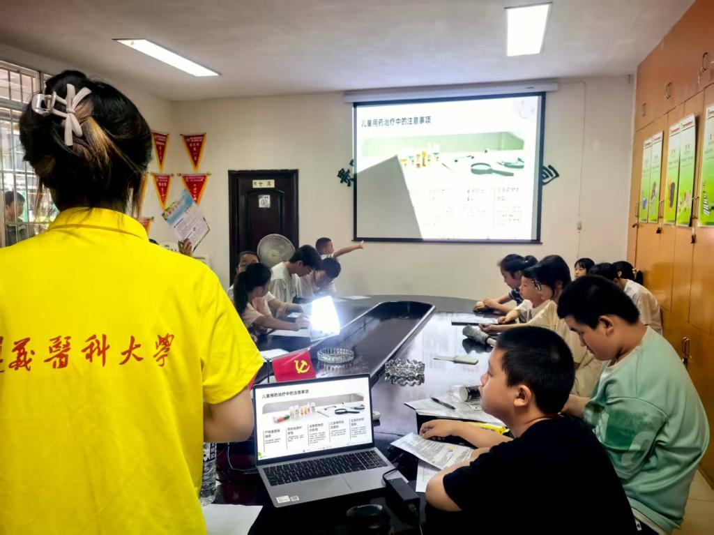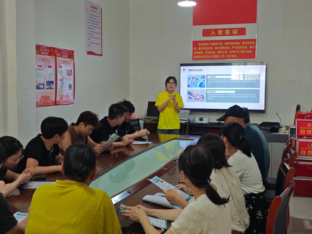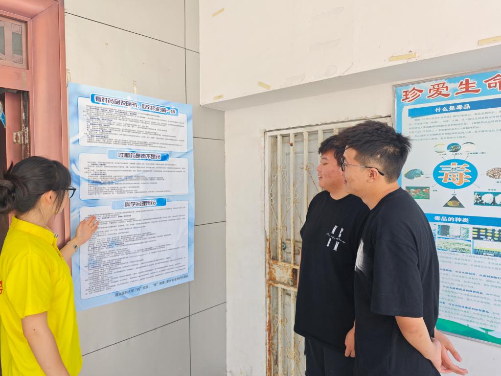 在杜艺玫、况安香两位指导老师带领下,18名药学院本科生组成的实践团队紧扣“服务”主题,精心设计“科普+实践”公益服务模式,14日通过图文展板系统讲解药品分类、药品批准文号识别及合理用药时间等核心知识,以微型讲座聚焦“生病该不该吃药”“警惕过期药品危害”等话题,破解日常用药盲区,并于15日走进乡村/社区家庭,以问卷调查从“家庭用药安全”“老年人用药安全”“儿童用药安全”三个维度深入了解家乡用药安全现状。实践团队坚持问题导向,针对重点人群开展精准服务,16日设立“夕阳红”专场,深入社区及家庭为老年群体宣讲慢性病安全用药原则,分发定制化宣传材料,减少多重用药与剂量错误风险,17日开展“小幼苗”专场,面向儿童家庭普及“儿童用药无小事”理念。活动核心环节聚焦家庭药箱科学管理,团队成员连续两天上门,协助居民家庭整理药品、优化存储环境、标注有效期,杜绝过期药隐患,培养家庭“用药明白人”,推动科普成效长效化。实践尾声,团队将七日活动核心知识点、常见误区解析及实用贴士汇编成《家乡安全用药指南》,为当地居民提供便捷参考。正值暑期,同学们还积极参与社区/乡村防溺水消防安全宣传,走入家庭播放防溺水宣传片。