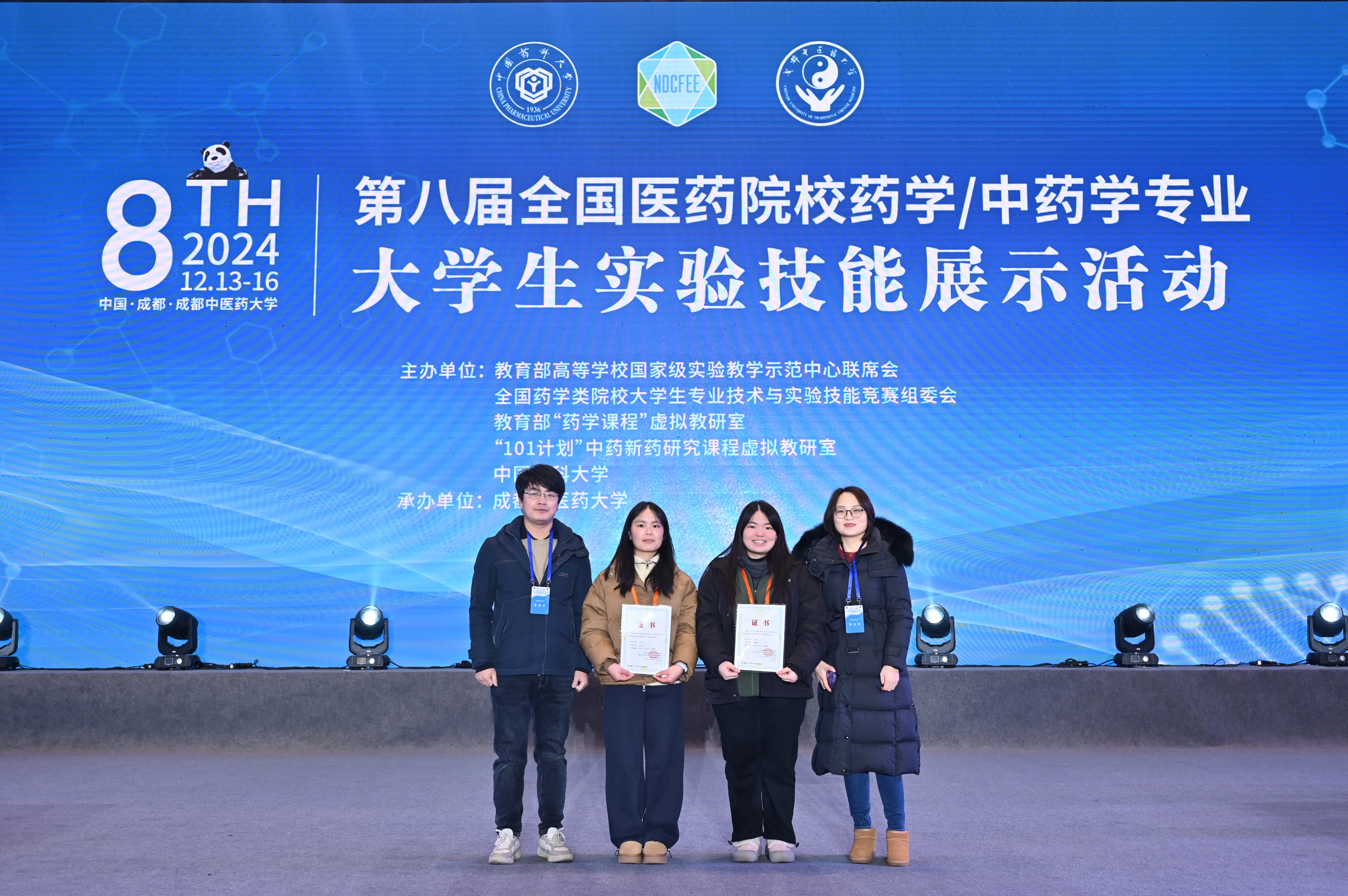 12月14日至15日,我校学子在第八届全国医药院校药学/中药学专业大学生实验技能展示活动中取得优异成绩。2021级药学专业李堂美(指导老师:李洪玉、吕佳佳、罗俊俊)荣获一等奖,2021级药学专业戴钧洳(指导老师:吕佳佳、高杰、杨明焱)荣获三等奖。