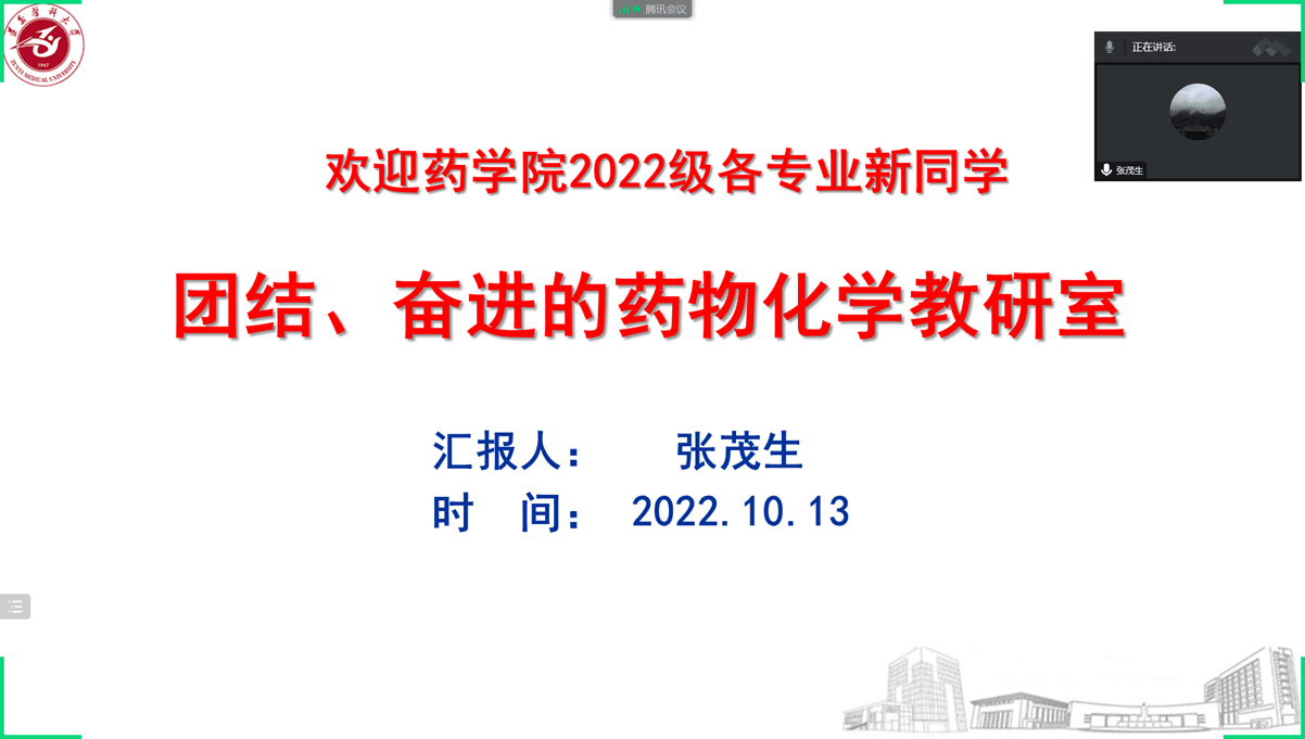 为做好“三全育人”人才培养工作,药学院于2022年10月13-16日为2022级全体新生和家长做了“云端”开学第一课和家长会。药学院4个行政部门、2个重点实验室、13个教学单位及临时组建的专业基础组和专业组分别从学校发展史,药学院发展史,教研平台,教研室或实验室概况与特色,师资队伍,科学研究,生管理及魅力药学等对2022级新生开展了全方位的开学第一课。