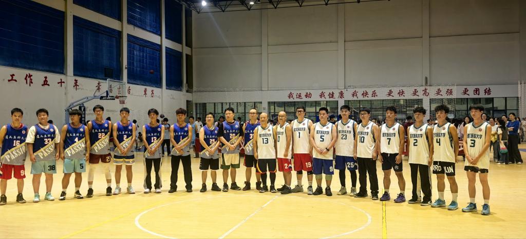 首场比赛由药学院教工队与2025级药学专业男队展开激烈对决,球员们敏捷的传球、精准的投篮、严密的防守,让现场欢呼声、呐喊声此起彼伏。