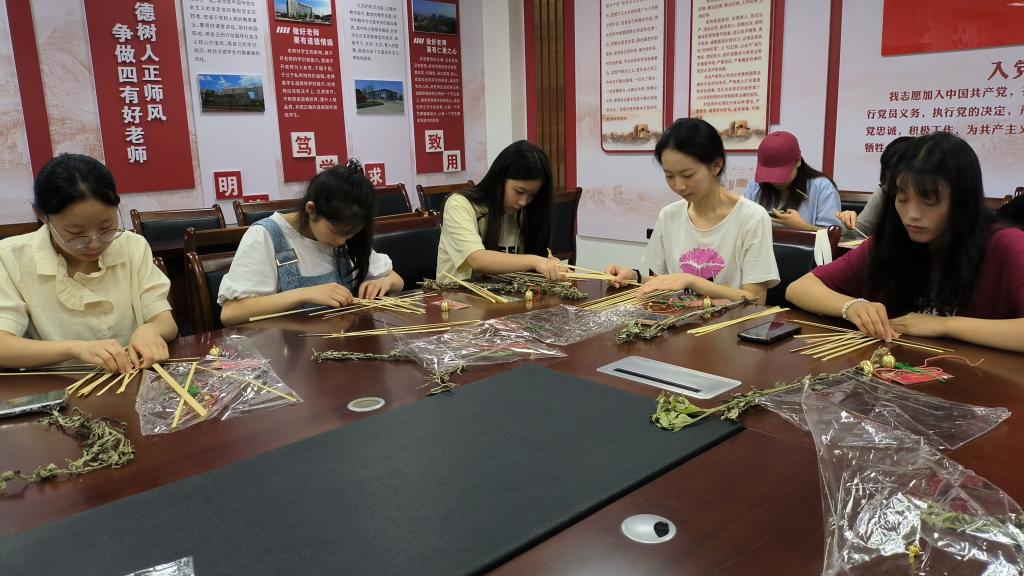 活动现场,师生们其乐融融,包粽子、缝香囊、编龙舟、做沙画,有的从手忙脚乱到从容娴熟,有的从奇形怪状到有模有样,通过老师的耐心指导,一个个满满的成就感油然而生。