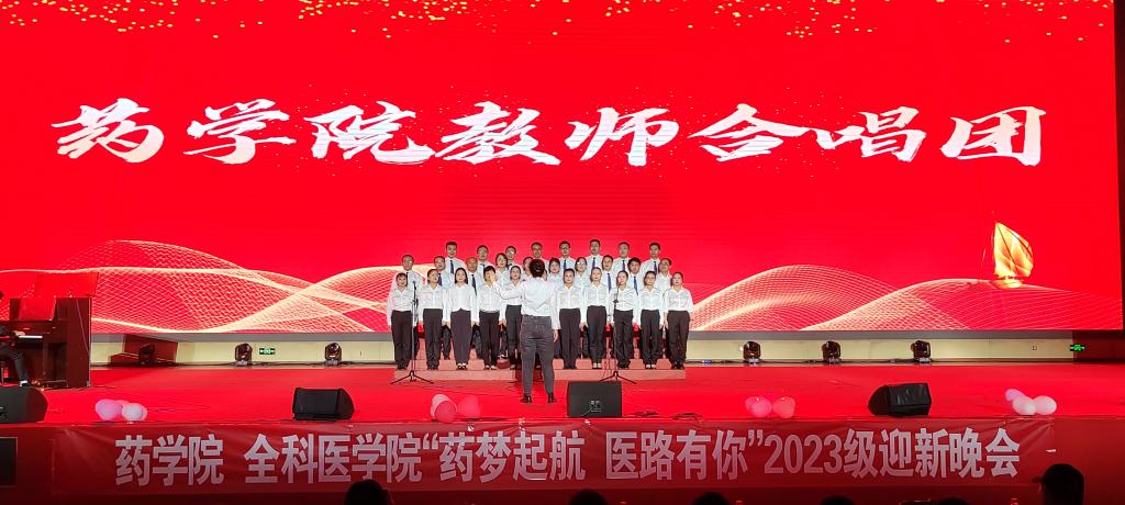 药学院党委书记、执行院长袁泽利在致辞中表达了对新同学加盟遵医药学院和全科医学院大家庭的欢迎之情,并勉励同学们怀着感恩之心,奋进在遵医校园。晚会由教师、本科生和研究生的三部分节目构成,以校歌《托起生命的航船》和药学院教职工大合唱《没有共产党就没有新中国》拉开序幕,从精妙绝伦的独唱,到歌曲串烧,再到药学院特色舞台剧《石斛花开》的华丽绽放,并穿插以抽奖环节,一步步点燃了整个晚会的现场氛围。