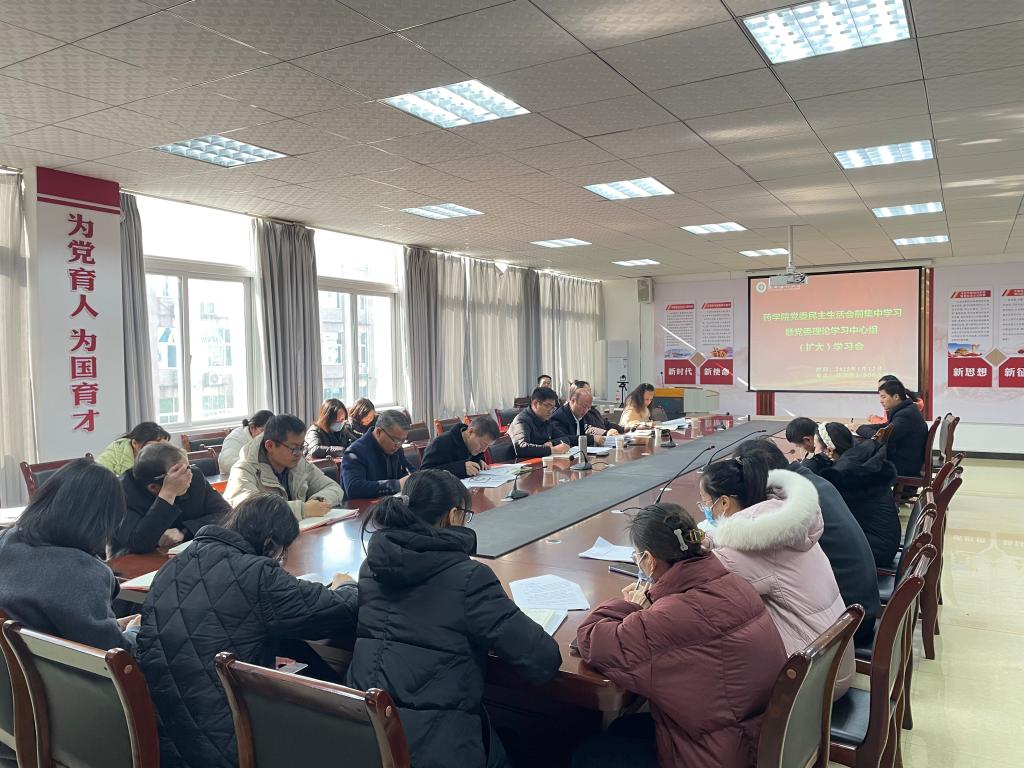 为高质量、高标准开好2024年度民主生活会奠定坚实思想基础,1月12日上午,药学院在1-506会议室召开2024年民主生活会会前集中学习暨党委理论学习中心组学习会议。会议由药学院党委书记袁泽利主持。