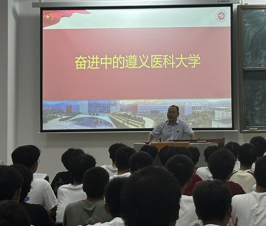 遵义医科大学副校长龚其海、药学院党政领导、教务科和学管办、各专业负责人与新生见面。活动由药学院党委书记、执行院长袁泽利主持。龚其海副校长发表寄语,鼓励同学们树立远大的人生目标、热爱专业、强健体魄、奋发上进,成就人生。