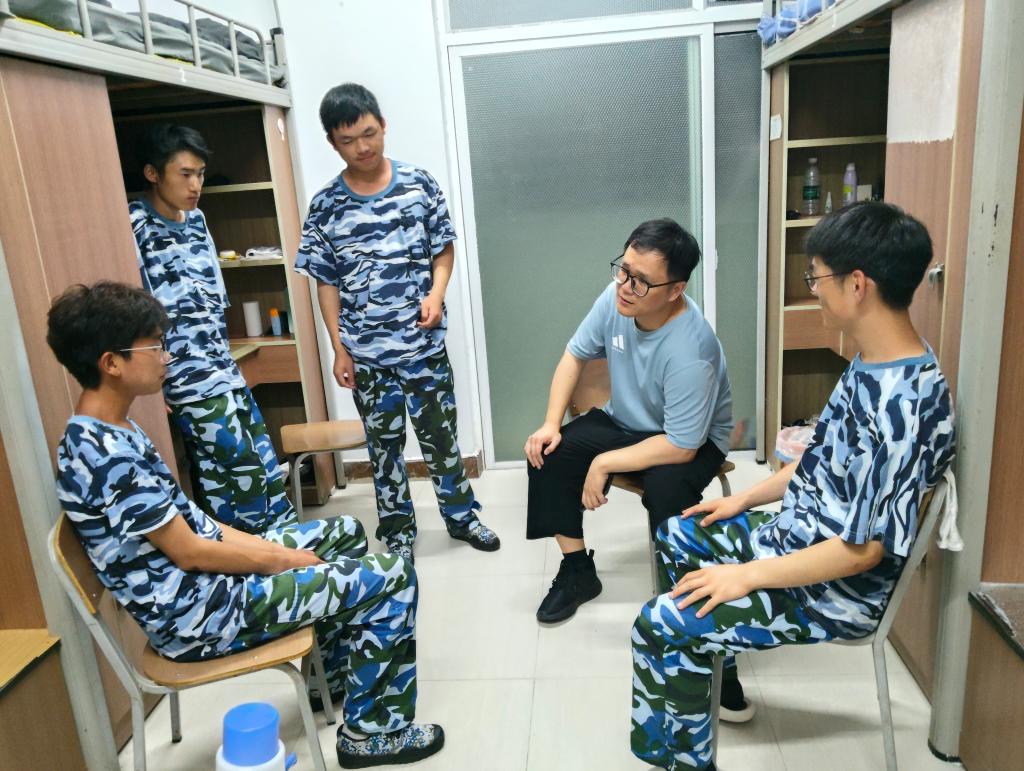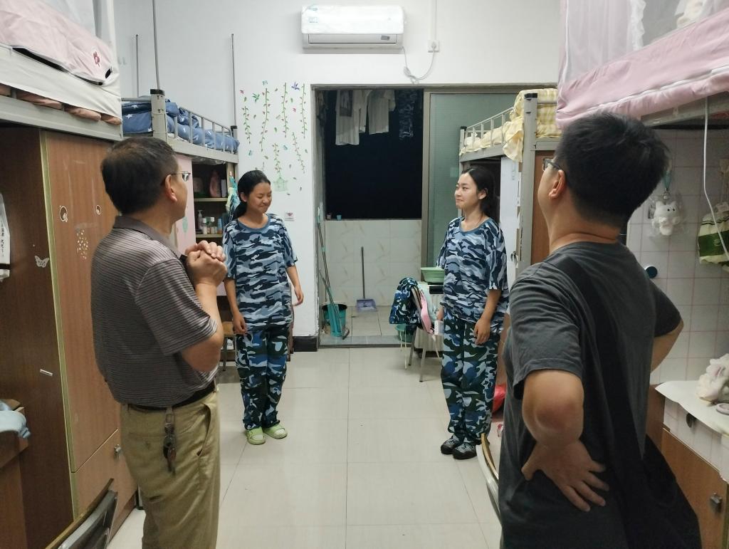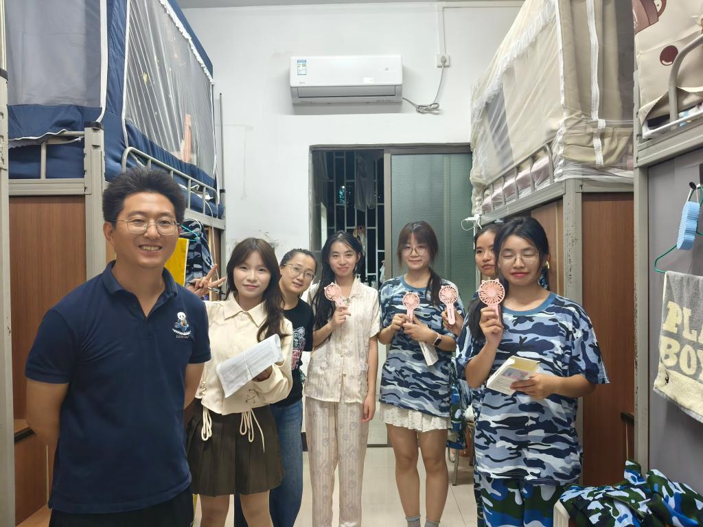 走访中,袁泽利及老师们通过与学生拉家常、说军训、谈专业、话未来等途径,不停拉近与学生的距离,还为同学们发放防暑降温小礼品,使学生切身感受到学院的关心关怀和家的温馨。
