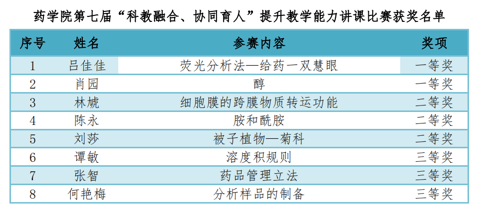 比赛现场,各位选手结合所授内容与自己科研进行了有效融合,讲解或风趣幽默、或温婉细腻,各具特色。比赛结束后专家评委和学生评委进行了精彩点评。比赛期间,专家还就教案撰写情况进行了评定。最终,评选出一等奖2名、二等奖3名、三等奖3名。获奖名单如下: