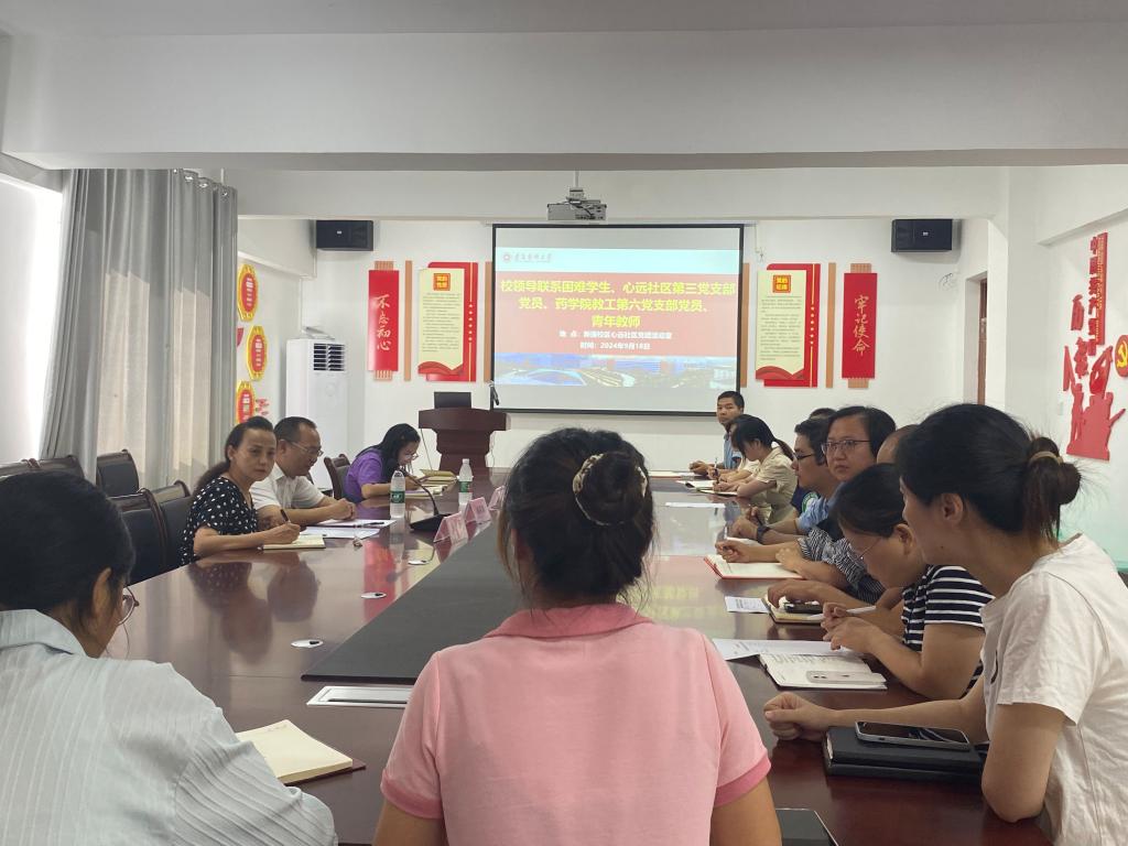 9月18日,学校党委委员、副校长龚其海到心远社区宣讲党的二十届三中全会精神,并与师生座谈交流。药学院党委书记、执行院长袁泽利,药学院副院长李利生,学生辅导员,教工第六党支部党员,青年教师代表,2023级药学专业卓越班及学生第三党支部党员参加了会议。会议由药学院党委副书记吴庆主持。