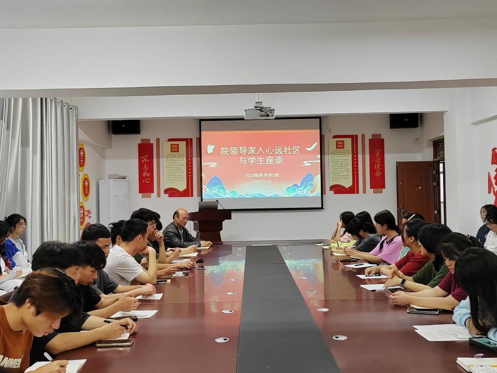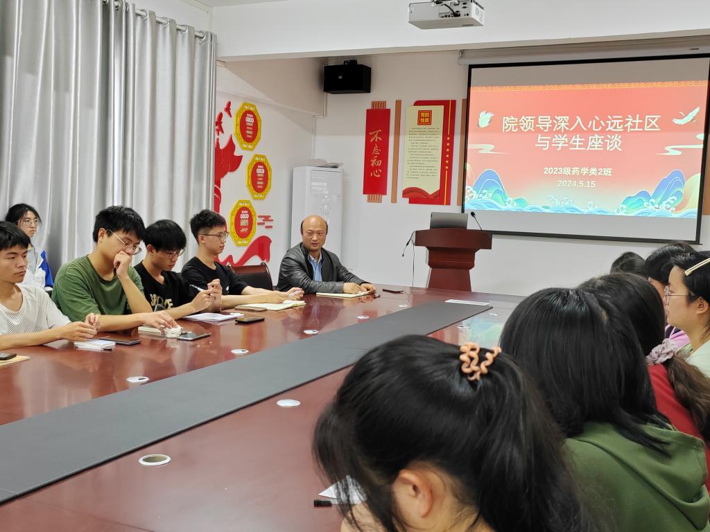 为进一步强化党政领导联系班级制度,深入学生“一站式”社区了解学生学习、生活等各方面情况。5月15日上午,药学院党委书记、执行院长袁泽利与2023级药学类2班全体同学在学生心远社区党团活动室进行面对面的座谈交流,学生辅导员蒋永梅参加了本次交流会。
